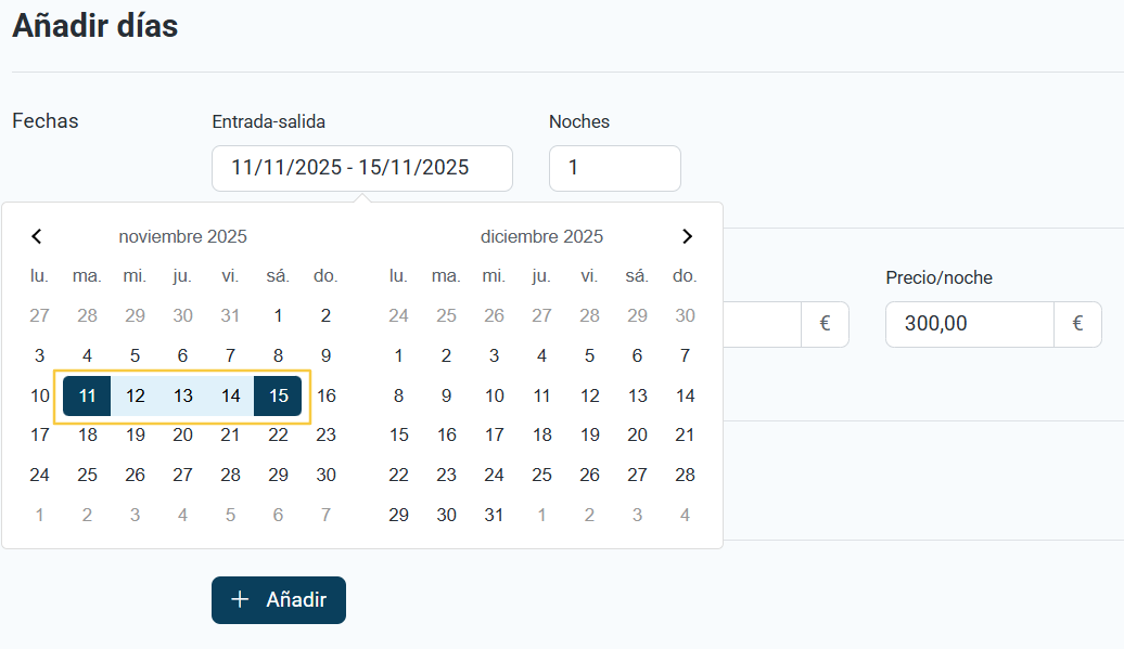 2. El botón añadir días te servirá tanto para añadir más noches a la reserva, como para modificar las fechas ya existentes.